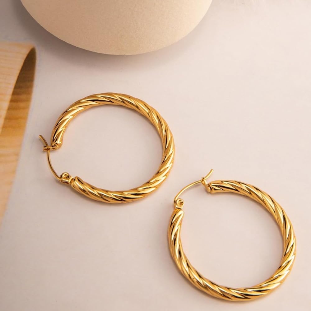 GOLD HOOPS EARRINGS FOR WOMEN:Designed with a radiant gold tone, these hoop earrings provide versatile styling options—from office attire to evening dresses. Their clean lines and subtle shine make them a timeless choice for anyone who values understated yet impactful jewelry.