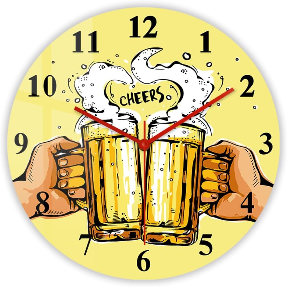 【High Quality Material】-This Beer Drinking wall clock is 12 inches and made of thickened acrylic, which is lightweight but sturdy.