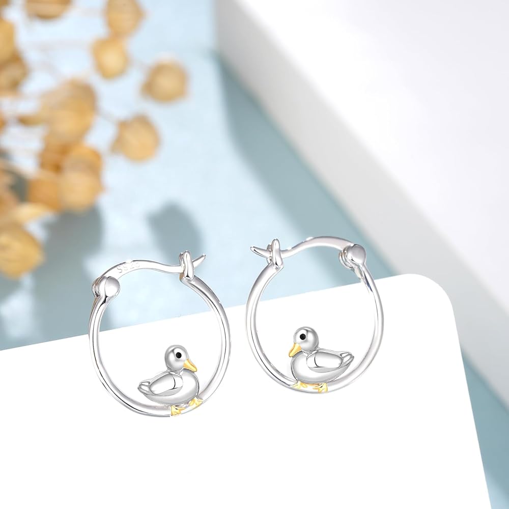 Duck Hoop Earrings 925 Sterling Silver Cute Animal Hoop Earrings Duck Gifts Jewelry for Women on Christmas Valentine's Day Thanksgiving Day