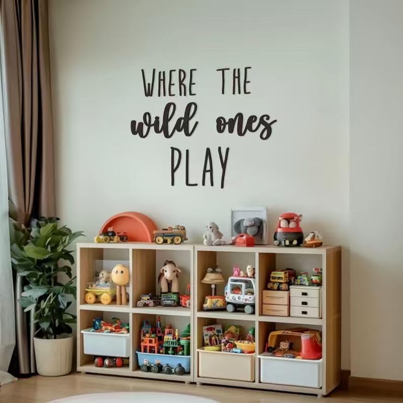 The sign can be designed in various styles to match different interior or exterior decors. It could have a simple, minimalist font for a modern look or a more elaborate, hand - painted script for a vintage or bohemian aesthetic. The “Where the wild ones play” message can also be accompanied by cute illustrations like animals, stars, or clouds, making it visually engaging.