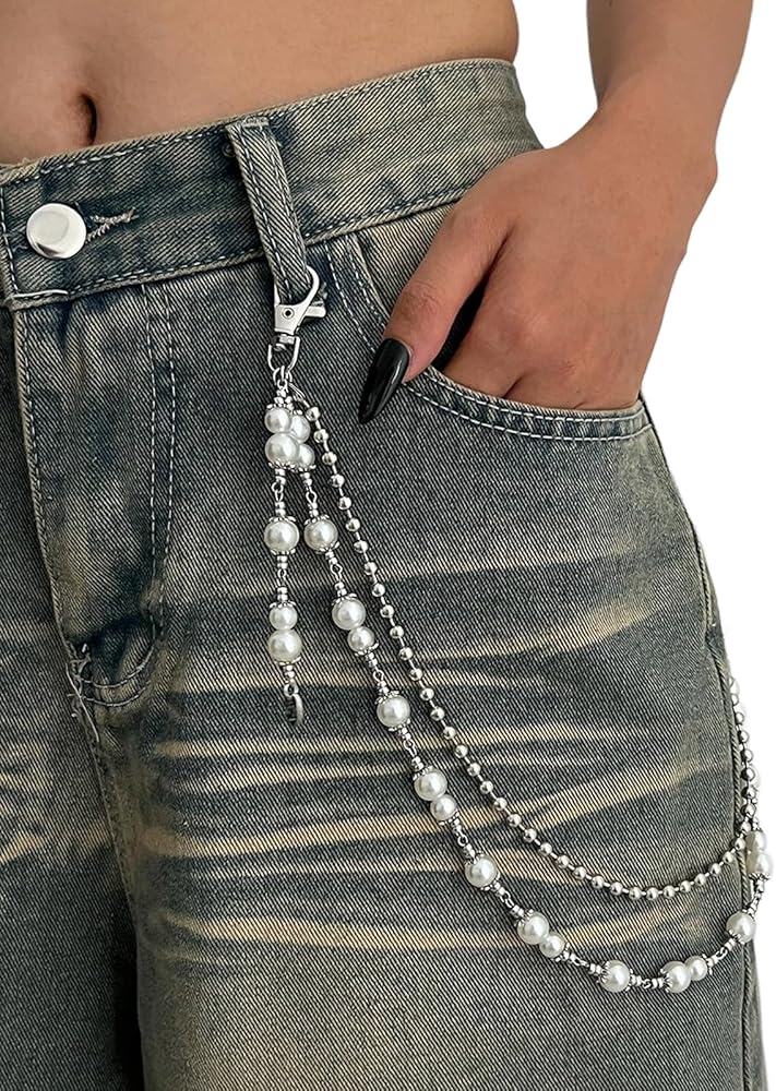 Gothic Bead Hip Hop Pants Chain for Men,Punk Pants Chain Belt Chain Wallet Chain Pocket Chain Layered Pearl Bead Keychains Trouser Chain Jeans Chain for Women Men