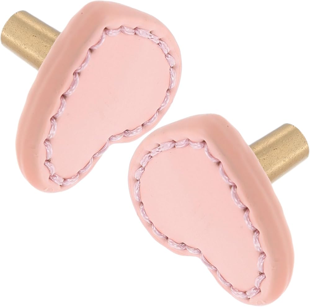 2pcs Pink Leather Cabinet Wardrobe Door Handles with Brass Base, Thickened Soft Drawer Pulls for ’ Room Nursery Dresser Furniture Hardware Accessories