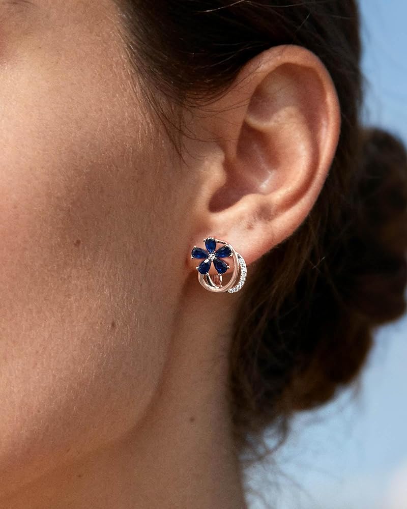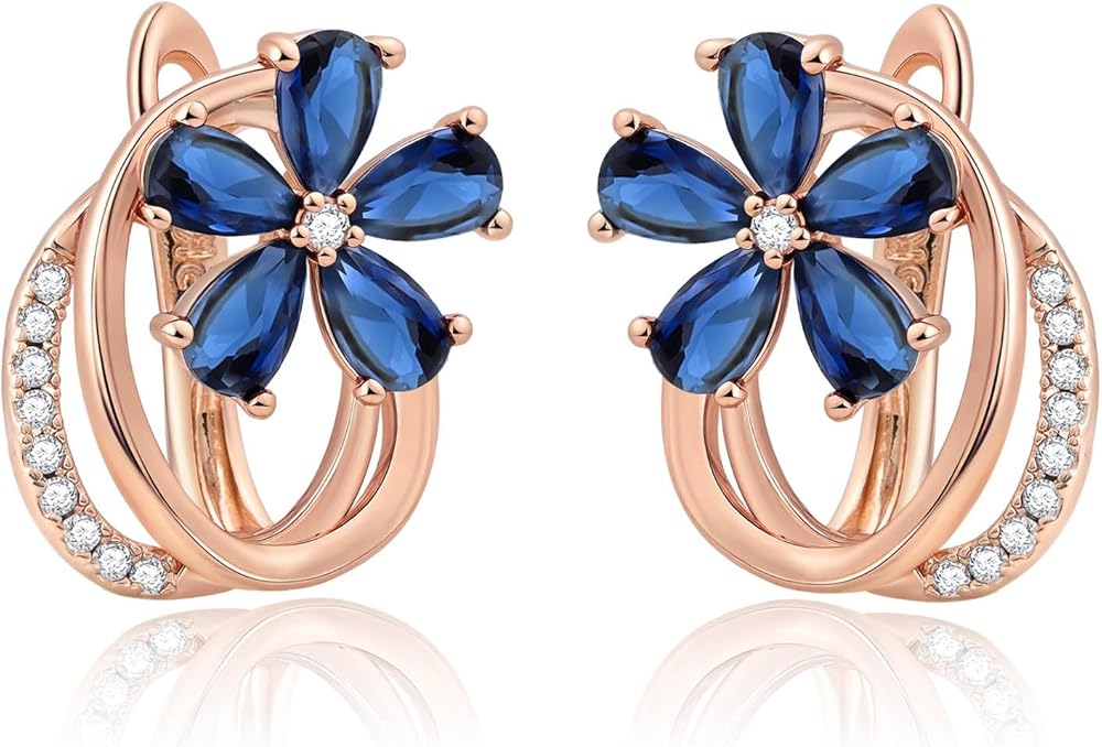 [Hypoallergenic Material] Crafted with rose gold plating, created sapphire, and cubic zirconia, these flower earrings are hypoallergenic, nickel free, and lightweight. They maintain their vibrant shine over time, allowing comfortable all day wear of these hoop earrings for sensitive ears