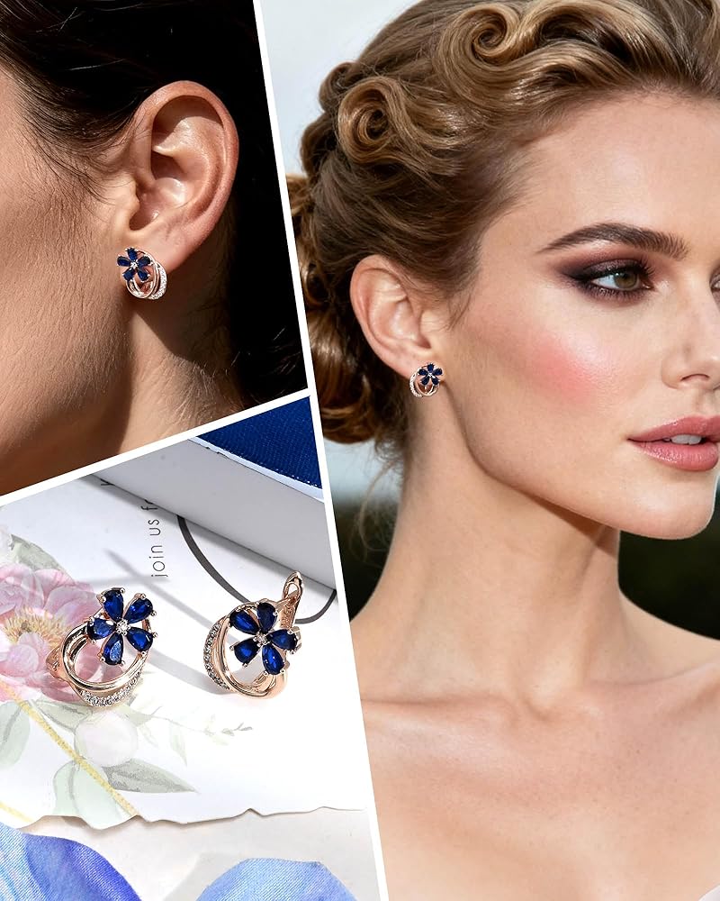 [Thoughtful Gift] Packaged in an elegant box, these rose gold plated sapphire flower earrings make a heartfelt gift for birthdays, Mother's Day, or anniversaries. The timeless floral design represents refined taste, ensuring these navy blue stone earrings will be treasured