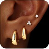 M MOOHAM Gold Hoop Stud Earrings Set for Women, Flat Back Studs Earrings Hypoallergenic 14K Gold Plated Cartilage Earring Lightweight Chunky Huggie Hoop Earring Stacks for Women Jewelry Gifts