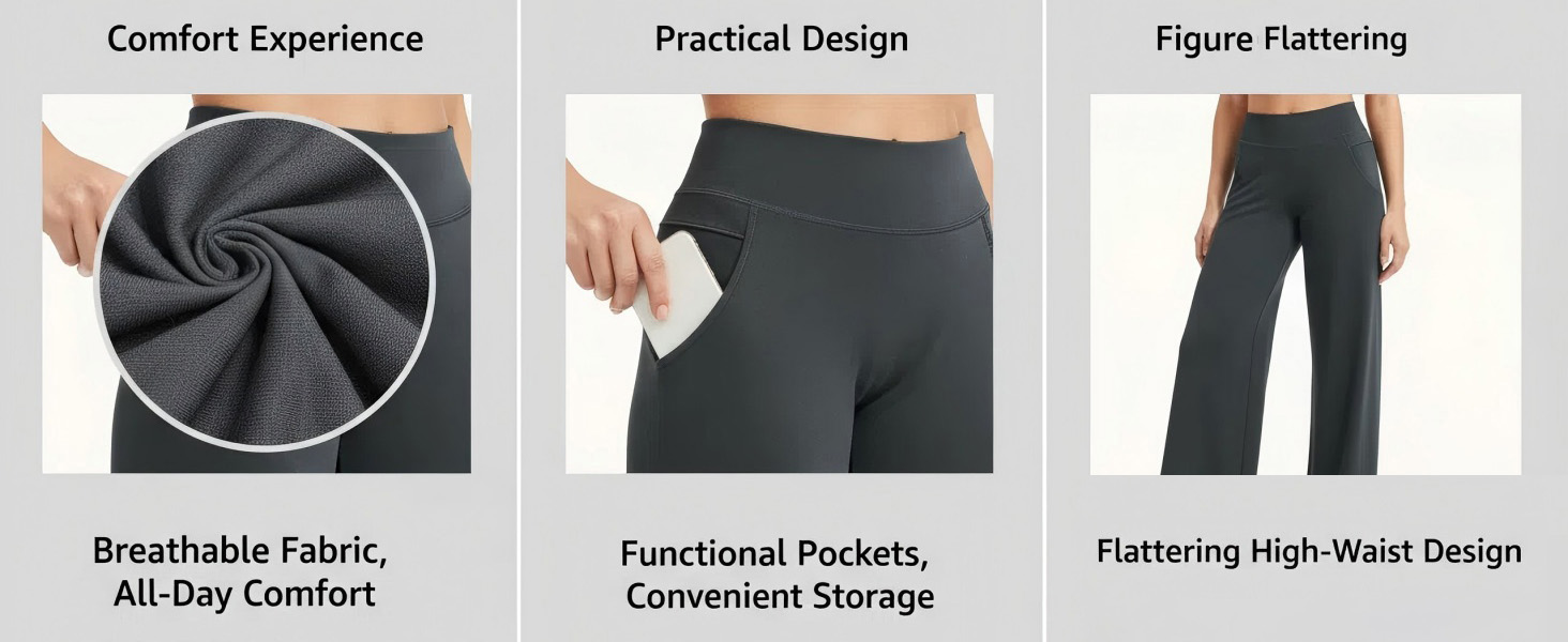 Butter-Soft & All-Day Comfort: Crafted from a supremely soft, stretchy fabric, these pants offer cloud-like comfort for yoga, lounging, or daily errands. The flexible high waist moves with you without digging in.