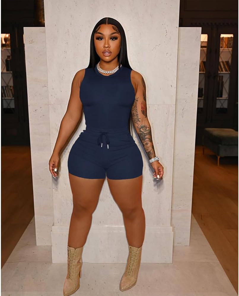 التصميم: ارفع طراز الصيف دون عناء! يجمع تصميمنا العصري بين قميص قصير بدون أكمام ورقبة مستديرة مع شورت مناسب للشكل، ويمزج بسلاسة بين الأناقة الكاجوال مع لمحة من السحر المثير، مثالي لأي مناسبة.