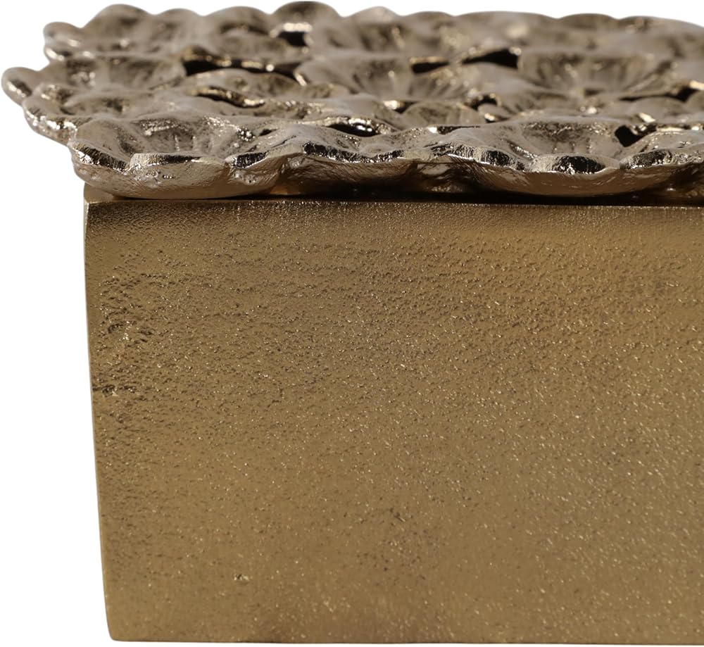 Decorative Box with Lid for Home Decor – Sculptural Jewelry Box and Storage Organizer with Textured Flower Accent for Keepsakes – Perfect Accent for Entryway, Shelf, or Coffee Table – 4" Gold