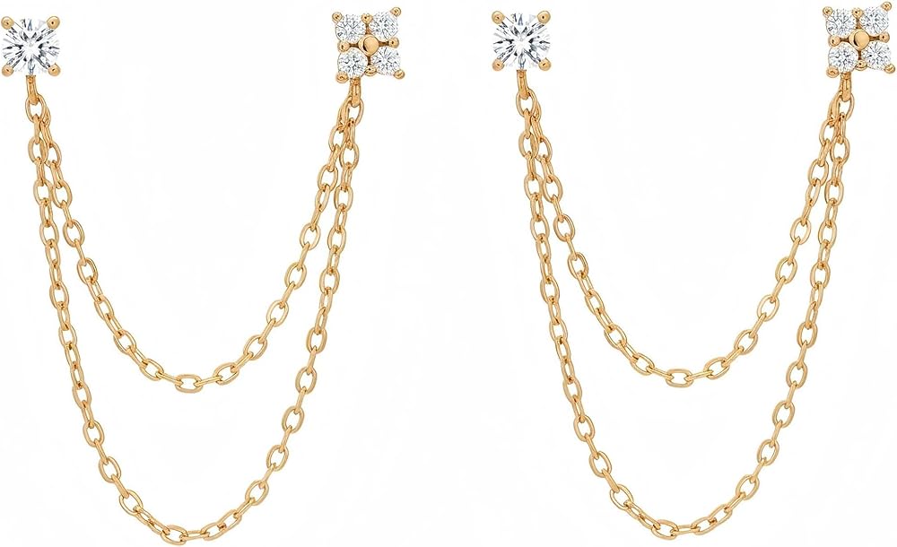 - Gold Chain Earrings: Stylish gold chain earrings designed for double piercings create a trendy layered look for dainty earrings and CZ stud lovers
