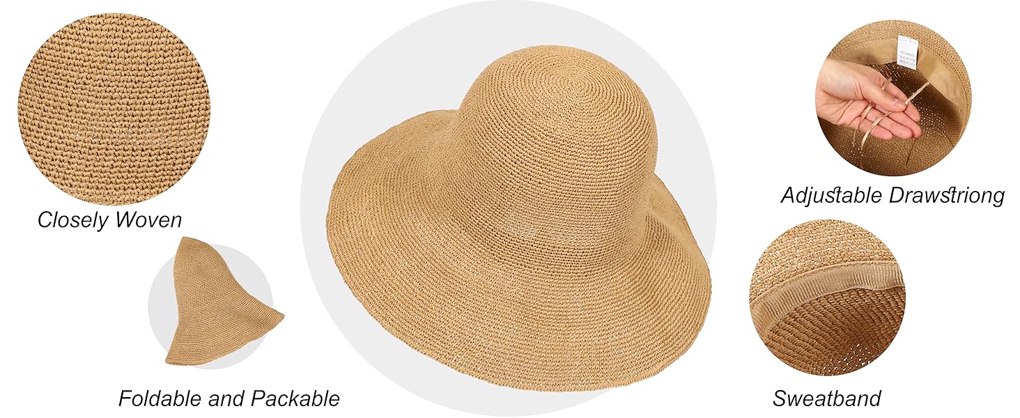 Design: This straw hat can be easily folded to fit in a backpack, making it perfect for carrying when going out. And the brim can be curled or shaped into the shape or style you want.