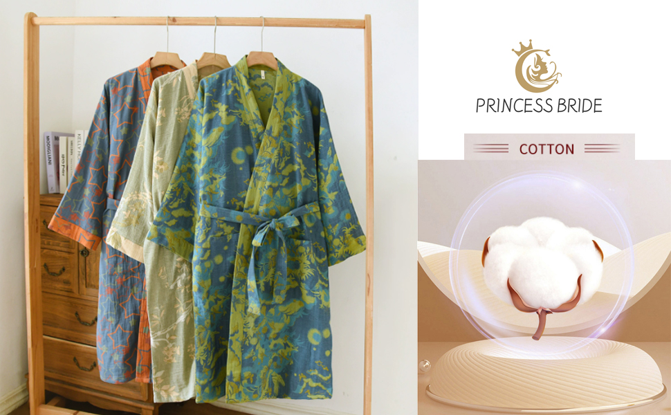 【High Quality Material】: This bathrobe is crafted from soft, skin-friendly, lightweight Yarn-dyed Jacquard Gauze Cotton fabric, providing exceptional breathability and comfort. Our robes are suitable for all seasons and are very cool even in summer. Especially women can feel comfortable and relaxed in the air-conditioned room after bathing.