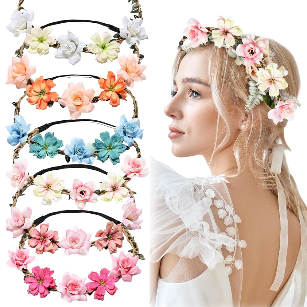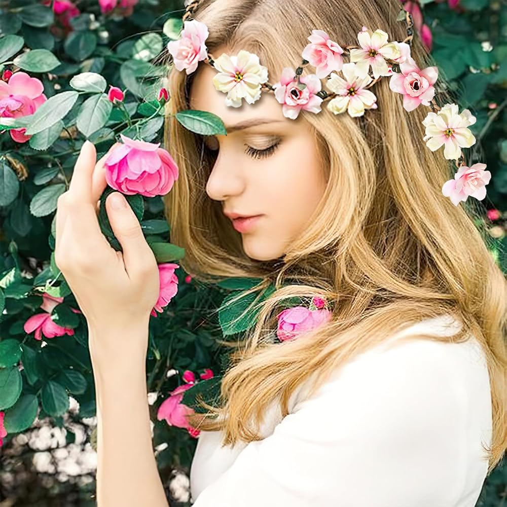 Flower Crown for Women Girls Flower Headbands Flower Girl Headpiece Bride Bridesmaid Wedding Headdress