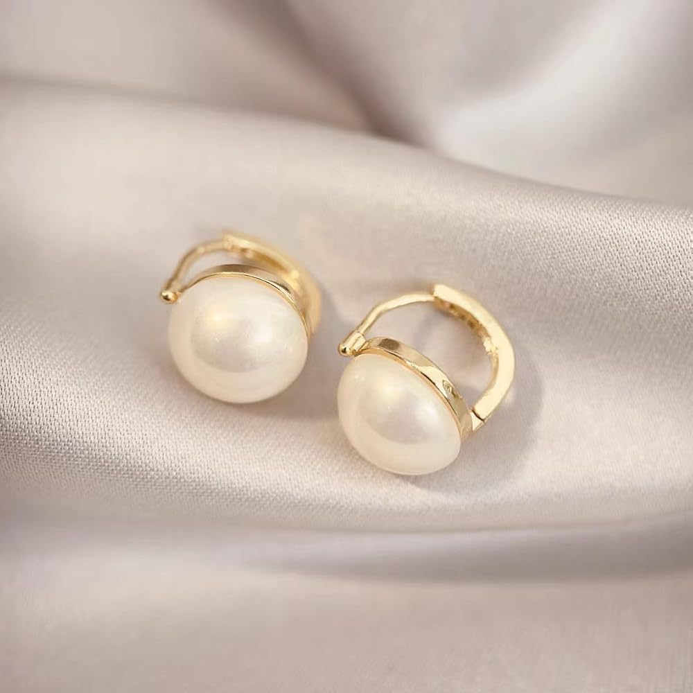 Elegant Pearl Accent: Features a bold dome-style imitation pearl set at the center of the hoop, adding a timeless, sophisticated touch.