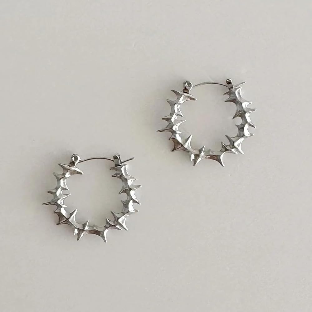 Make a bold statement with these edgy Gothic thorn hoop earrings that perfectly blend punk and streetwear aesthetics.