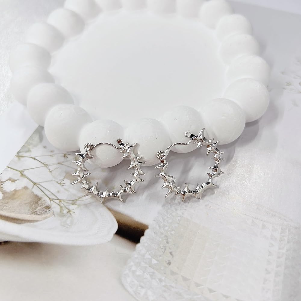These silver-toned huggie hoops feature intricate spiky elements that capture the essence of grunge and rock fashion.