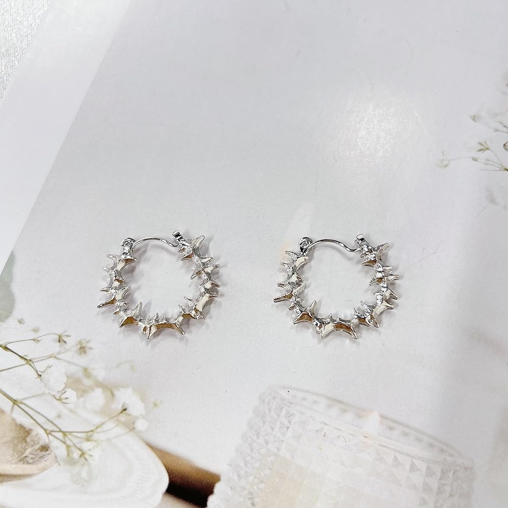 Gothic Thorn Hoop Punk Earrings for Women Men Statement Goth Barbed Wire Dangle Silver Retro Earring Streetwear Hip Hop Barbwine Mesh Spike Hinged Huggie Hoops Party Harajuku Grunge Rock Jewelry