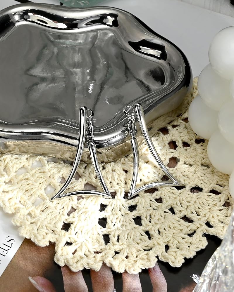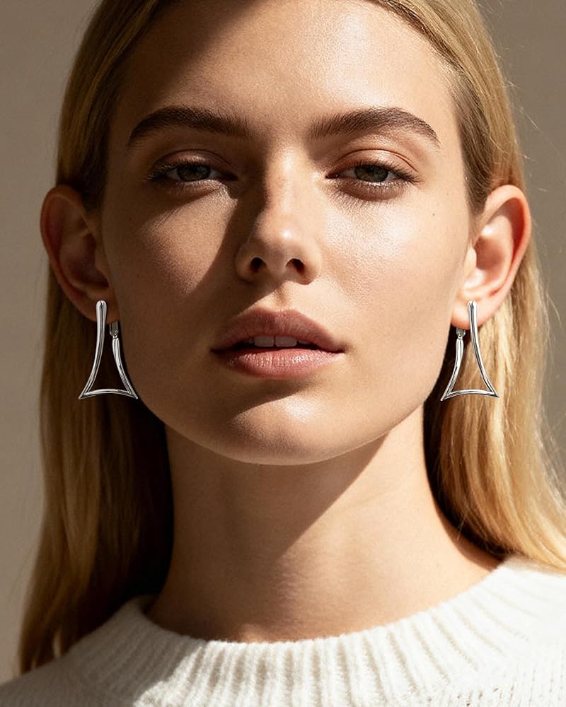 Durable Construction: Made with high-quality silver plated and hypoallergenic huggie clips, these large earrings hoops resist tarnishing and irritation. The triangle hoop design balances durability and style, making them a versatile staple in any jewelry collection