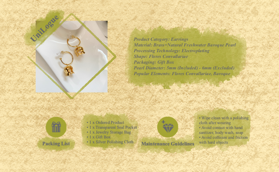 French Vintage Flores Convallariae Natural Fresh Water Baroque Pearl Drop Earrings Two-Ways-to-Wear Sterling Silver Needle Stud Hoop Earrings