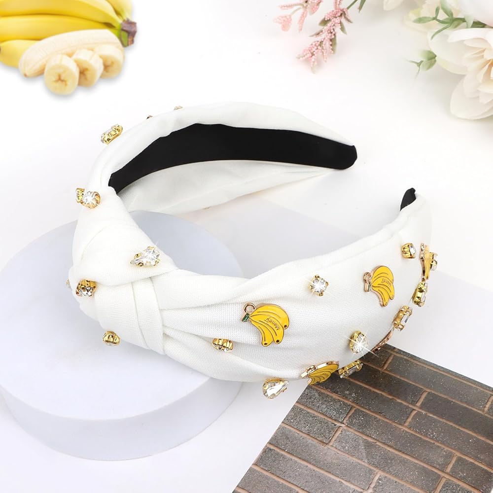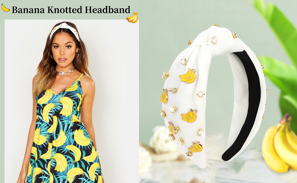 Cute Design: Combining bananaand white rhinestones to create this lovely tropical fruit headband. This headband is exquisite and dazzling enough, will make you more adorable