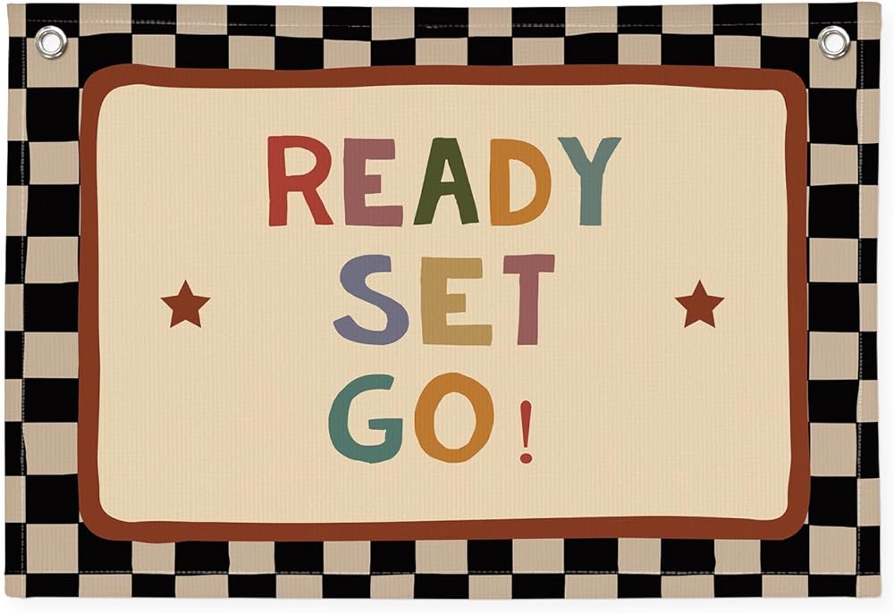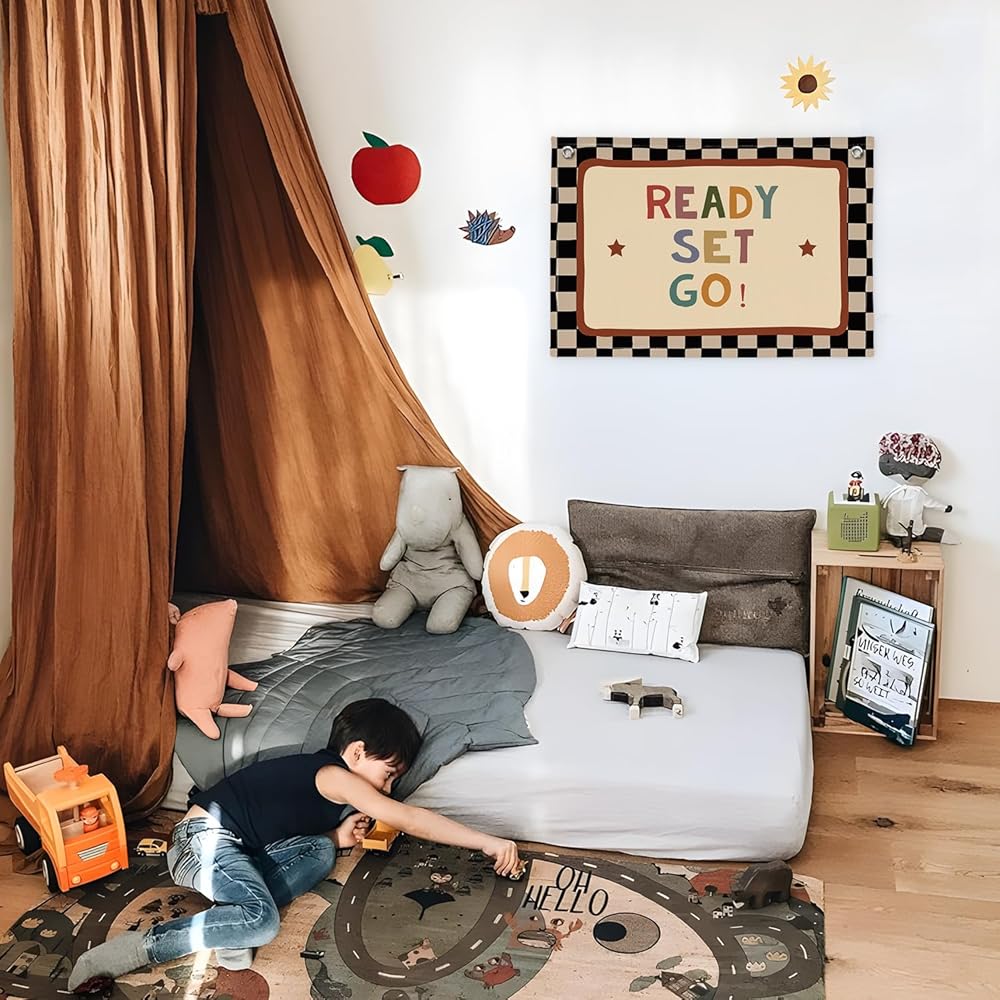 XYDEG Race Car Room Decor for Playroom Bedroom Wall Decor, Toddler Playroom Wall Art Hanging Linen Banner,Play Room for Nursery Kids Boy Girl Room, 20x30 Inch