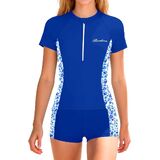 🏖️Bold Athletic Print Design – This girls rash guard swimsuit combines royal blue with printed side panels for a dynamic sporty look. A fashionable girls swimsuit two piece that doubles as a rash guard swimsuit and bathing suit.