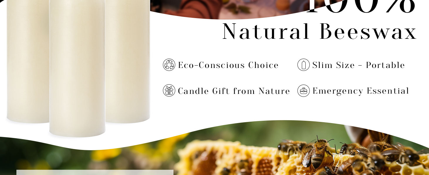 Slim Design, No Messy Drips Thinner than standard pillar candles, our specially designed beeswax pillars paired with a precision wick prevent wax tears and dripping, keeping your surfaces clean and safe.