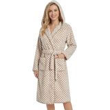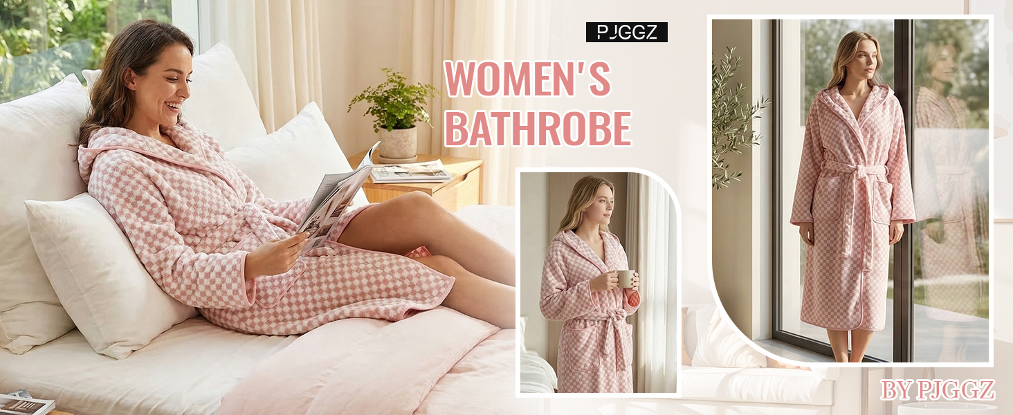 This women's hooded bathrobe features a Y2K-inspired checkered design that blends modern style with everyday comfort. Crafted from soft coral fleece, it offers a smooth, skin-friendly touch while delivering excellent absorbency to quickly dry the body after bathing or showering. The fabric is cationic dyed for long-lasting color and shape retention, and the plush structure shedding-resistant and deformation over time. Built-in static-resistant fibers help reduce static in dry conditions, making it comfortable to wear year-round. Durable, lightweight, and easy to care for, this bathrobe is ideal for home, spa, or relaxed lounging use.
