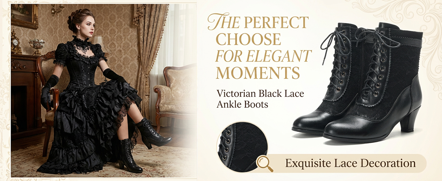Elegant Victorian Style with Modern Versatility: Step into timeless style with these victorian lace up ankle boots for women, featuring delicate lace panels and smooth leather. Designed with a subtle vintage touch that blends effortlessly with modern outfits — perfect for both everyday wear and statement looks.