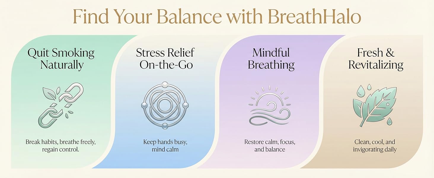 🧘 Mindful Breathing & Emotional Balance: More than a smoking cessation tool, BreathHalo encourages deep, steady breathing that supports emotional stability and calmness. Every breath helps release stress, enhance mindfulness, and restore inner balance, making it ideal for daily relaxation and focus.