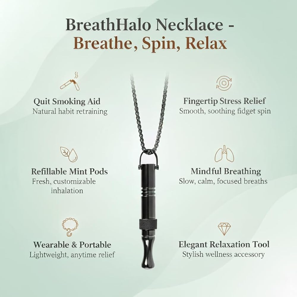 🍃 Quit Smoking Aid & Healthier Alternative: Break free from smoking with the BreathHalo Quit Smoking Necklace—your mindful companion to a healthier lifestyle. Designed to soothe cravings, retrain the hand-to-mouth habit, and promote calm breathing patterns, it helps you quit naturally and regain control.