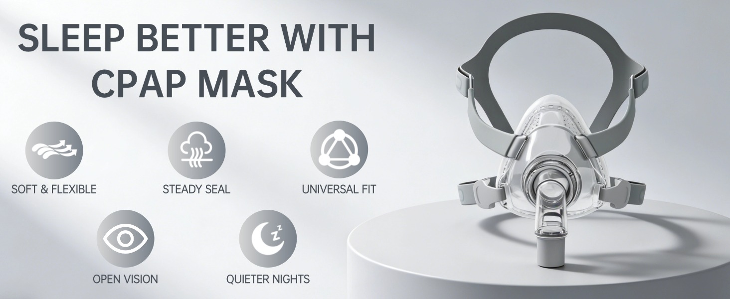【Soft & Comfortable Fit】Made from soft, elastic, and high-quality silicone material, these full face cushions provide a snug fit, greatly isolating the air to improve wearing comfort and prevent leaks. This maintains stable air pressure for optimal therapy efficacy and a quieter sleep experience without disruptive hissing sounds.