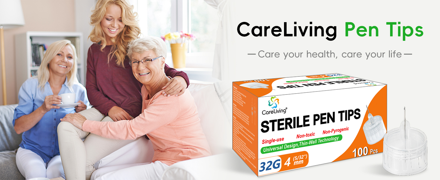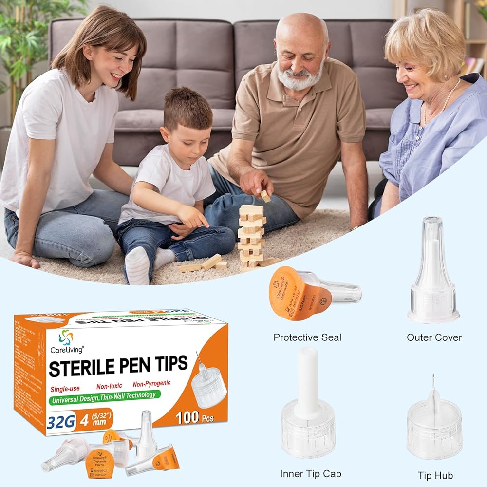 Pen Tips 32G x 4mm, Universal Fit, 100/bx, Sterile, Comfortable