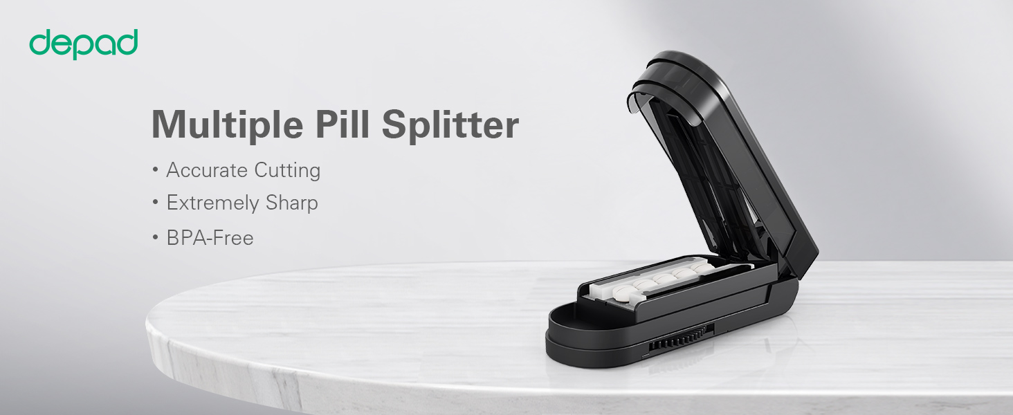 【Extremely Sharp and Safe】DEPAD pill cutter for small or large pills adopts extremely sharp stainless steel blade, guarantee every neat cut. Sturdy and safe, since the blade is not exposed and only out of the blade guard when in use