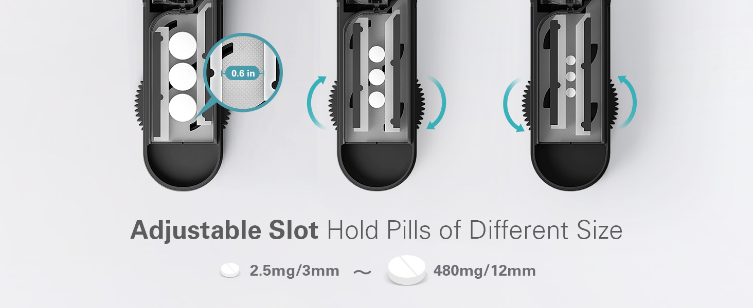 【Accurate Cutting For Pills of Any Size】There are 2 adjustable bars of this pill splitter that can safely accommodate pills of any size, round, rectangular or oval. This pill cutter splitter for small and tiny pills can cut pills with a width of 2mm-15mm, so it can easily cut tiny pills of 2.5mg