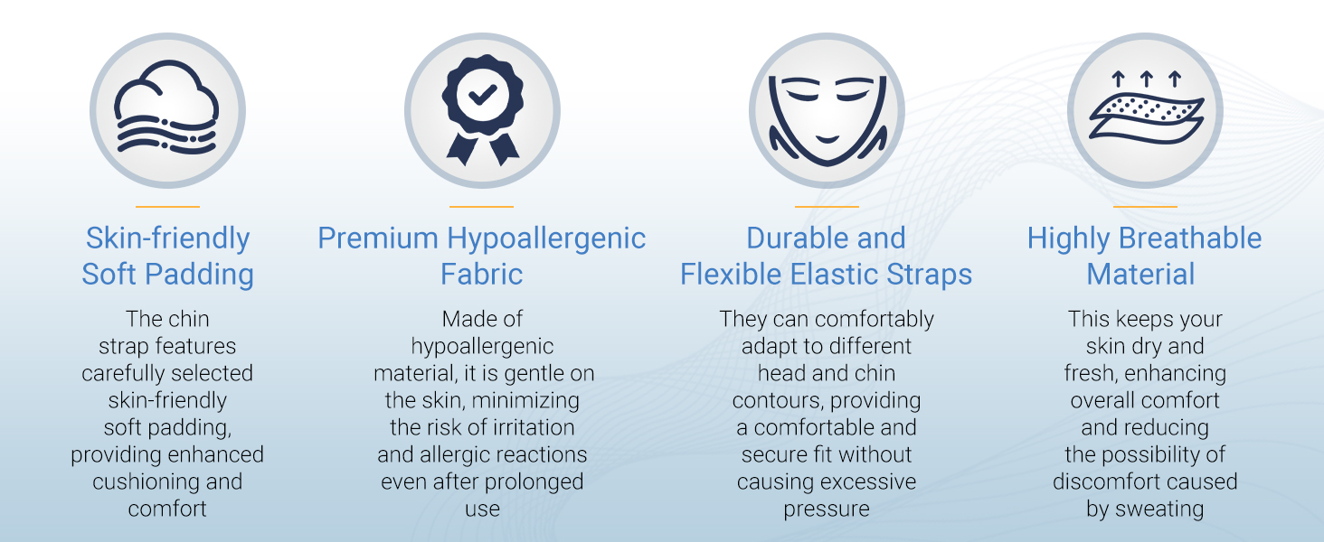 Comfortable Hypoallergenic Blend Snore Stopper:Selected blended fabrics, combining the high elasticity of spandex and the wear resistance of nylon. Soft and skin-friendly, with excellent breathability. The seamless design ensures you can wear it all night without any discomfort and wake up without any marks
