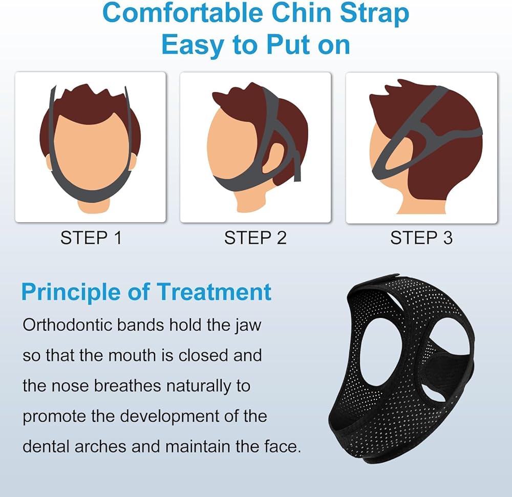 Anti Snoring Devices - Chin Strap for Sleeping - Simple and Effective Stop Anti Snoring Chin Strap - Adjustable Airflow Jaw Strap - Snoring Solution for Women and Men - Black