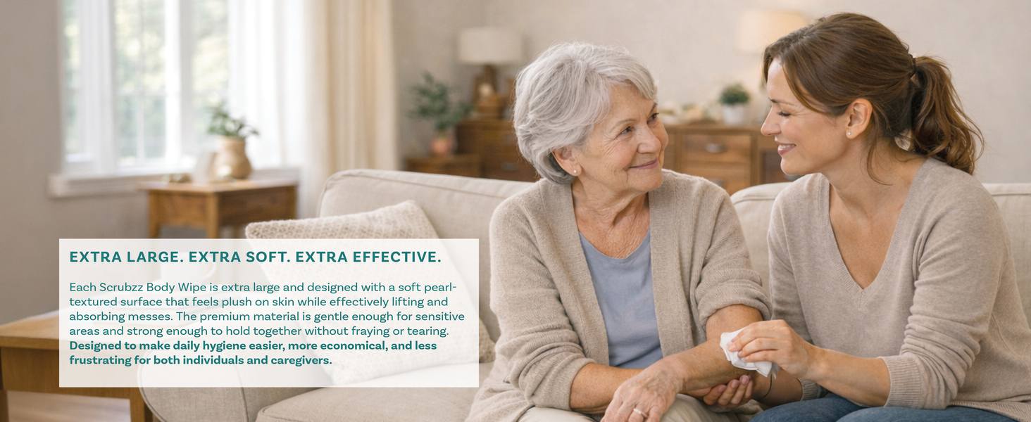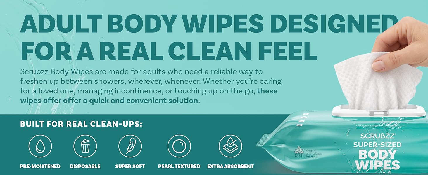 Extra large 8” x 12” wipes that are 50% thicker and wetter than standard adult wipes, so you can clean more with fewer wipes and less effort.