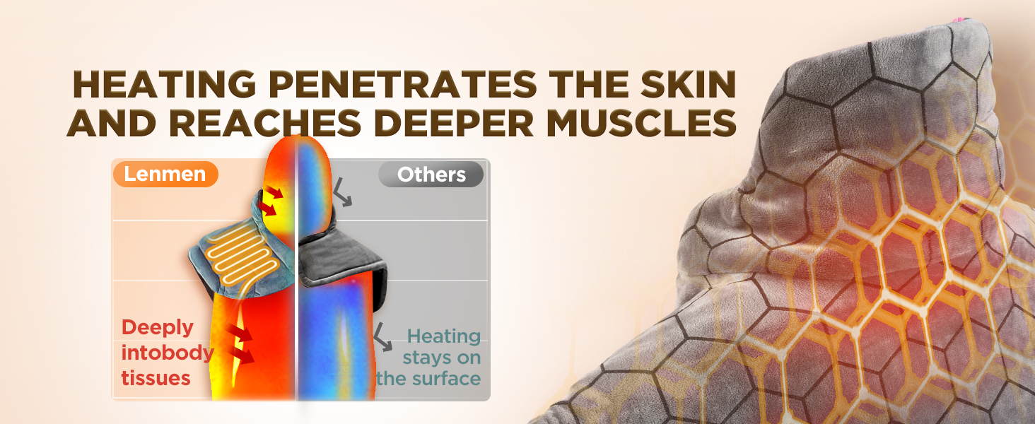 354" EXTENDED HEATING COIL, 3X HEATING EFFECT! With a heating coil length that is 150% of ordinary heating pads, Lenmen achieves faster heating and a wider, denser heating area. The result is heating quickly distributes evenly across every corner of the pad within a minute, ensuring no place is left unattended. The long work makes you feel the world's weight seems to settle on your shoulders. Urgently seeking relief for sore and stiff shoulders? Look no further than this neck heating pad!