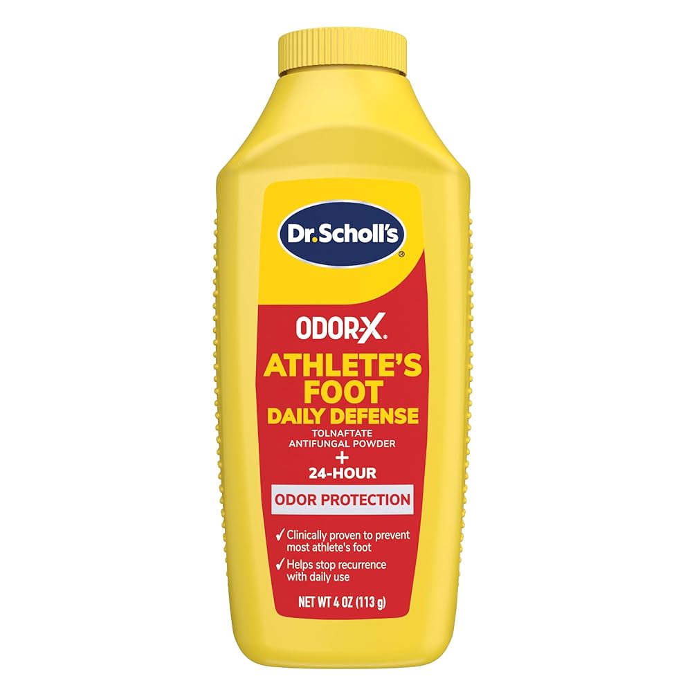 Dr. Scholl's Odor-X Athlete's Foot Daily Defense Powder is formulated to prevent most athlete's foot by providing continuous all-day protection. With daily use, it helps prevent reoccurrence, offering a simple and effective way to maintain healthier looking feet over time. The advanced formula delivers 24-hour odor protection helping keep feet feeling fresher throughout the day. It prevents itching, burning, and redness symptoms commonly associated with athlete's foot, supporting everyday comfort. This expert-backed solution is designed to help keep skin healthy and protected with easy daily application. Simply sprinkle the powder on your feet to prevent athlete's foot as part of your regular routine. Dr. Scholl's Odor-X Daily Defense Powder offers dependable, everyday support for anyone seeking prevention from athlete's foot.