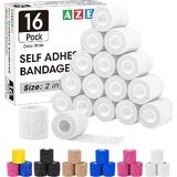 Self Adhesive Bandage: Package includes 16 rolls of multi-color self adhesive bandage wrap. Each roll measures 2 inch wide and 5 yards long after stretching. It easily adheres to itself but will not stick to other surfaces such as skin or hair, making it easy to pull off and change bandages