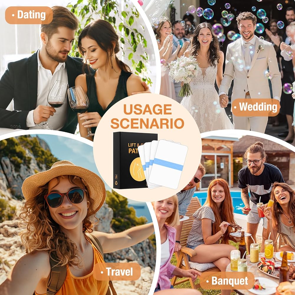INVISIBLE BODY LIFTING: Transparent body lifting patches designed to lift and smooth sagging skin on legs, abdomen, buttocks, and arms for a more toned appearance