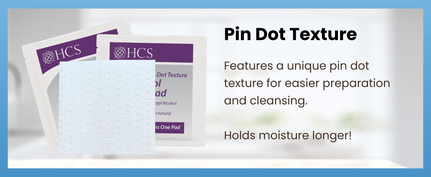 Thick & Textured: HCS skin prep wipes are 2-ply and feature a unique pin dot texture for easier preparation and cleansing. Helps hold moisture longer.