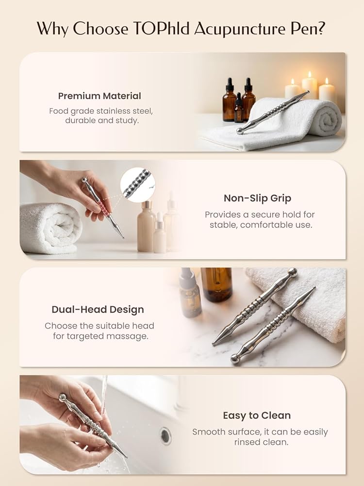 - DEEP TISSUES MASSAGE: Tophld manual acupuncture pen provides deep tissue massage for relieving tension, muscle aches, and pains