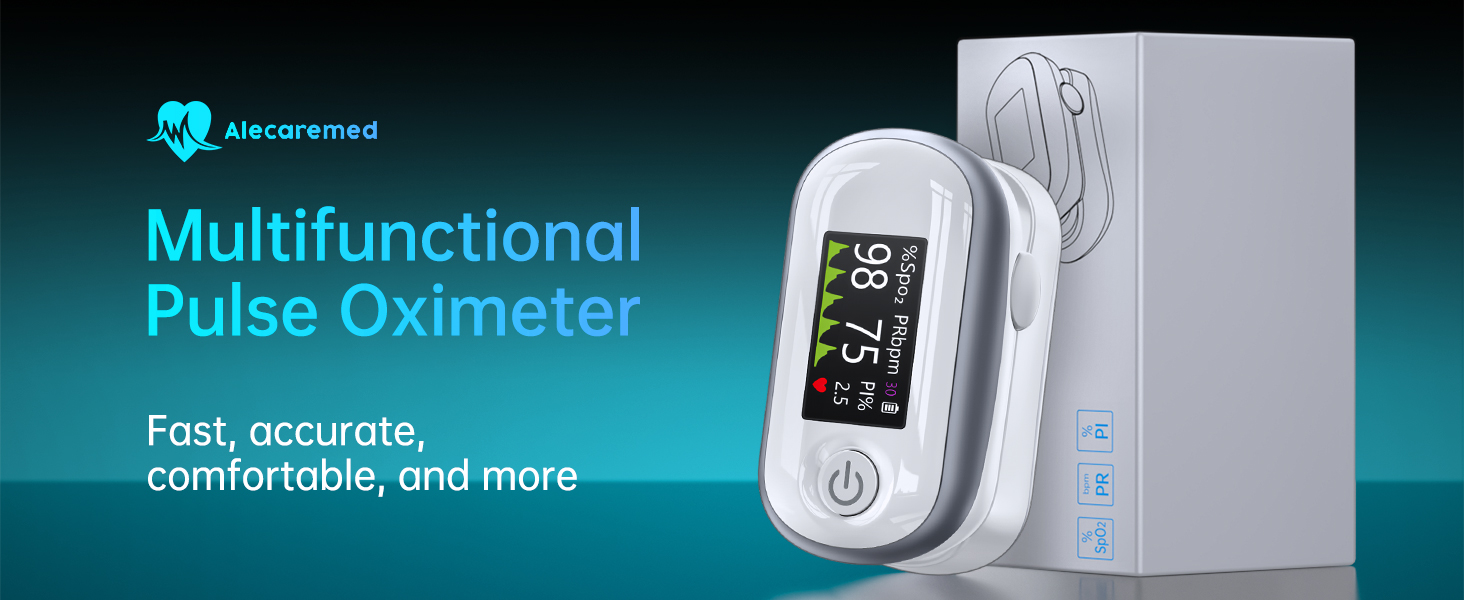 FASTER & MORE ACCURATE - Alecaremed pulse oximeter offer the best accuracy. Pulse oximeter fingertip utilizes advanced intelligent chips to ensure faster detection speed, and its dual light-blocking shield structure design effectively prevents interference from external light, ensuring highly accurate results