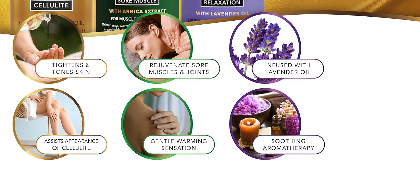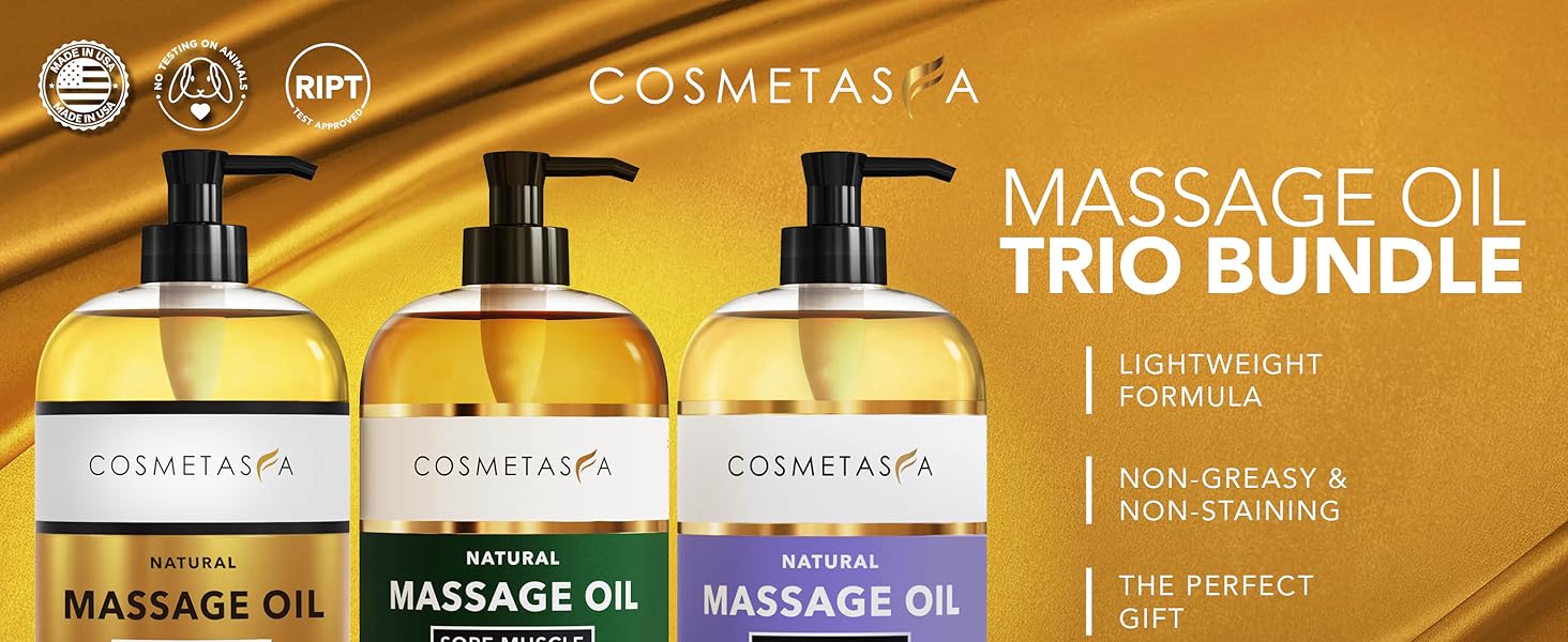 CALMING, RELAXING AND DEEPLY NOURISHING- Cosmetasa Relaxation lavender body oil, Sore Muscle warming massage oil, and Anti-Cellulite Massage Oil are crafted with a unique blend of quality massage therapist oils to provide the perfect balance of a gentle, lightweight and soothing massage.
