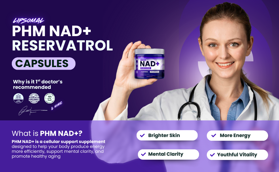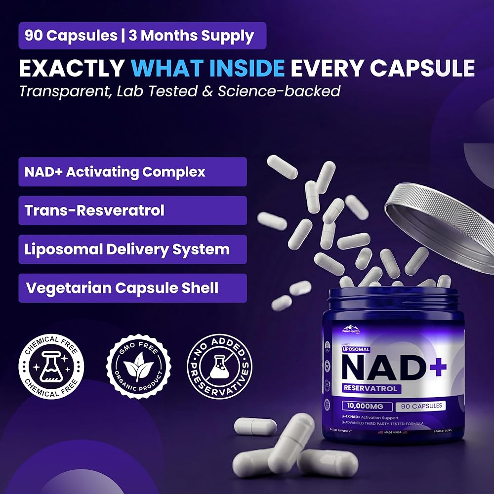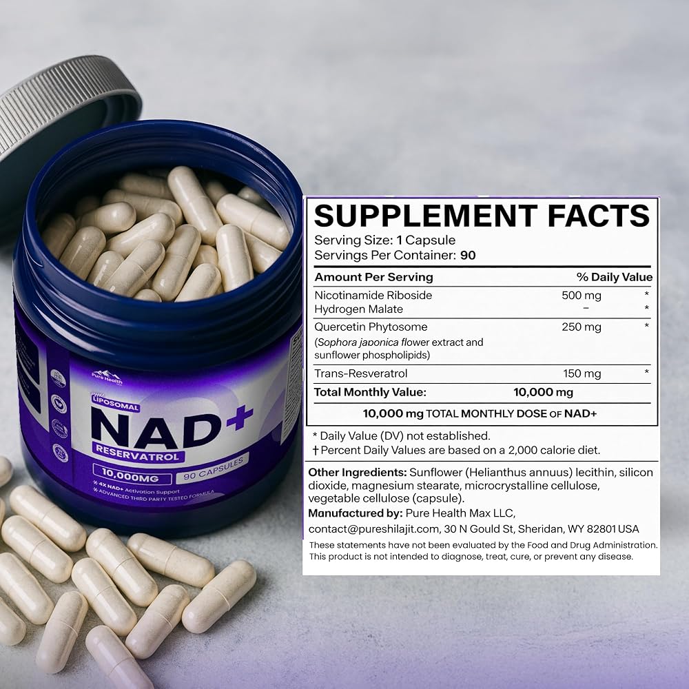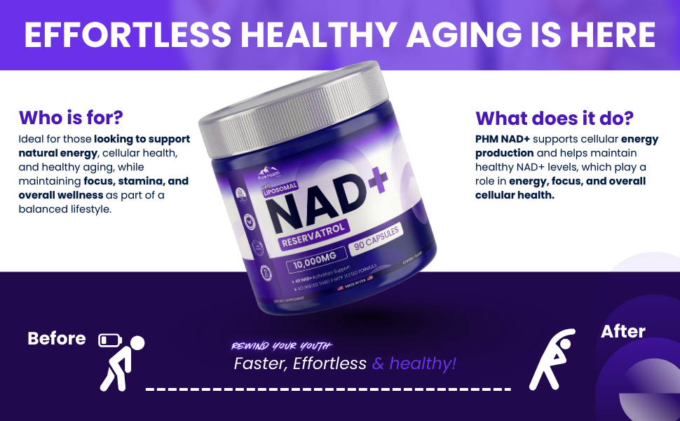 PHM NAD Resveratrol Supplement - 10,000mg Extra Strength | NAD+ Liposomal Supplements for Men and Women | NMN & NMNH Alternative | 90 Capsules, 1.5 Months Supply