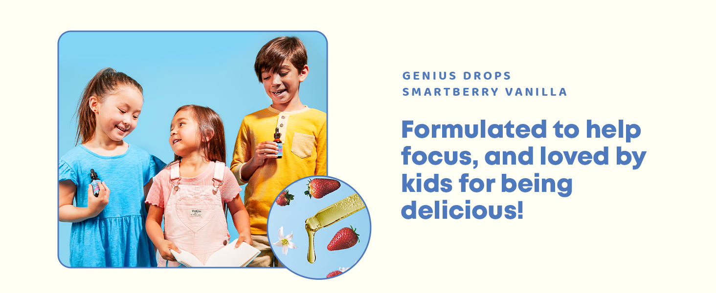 Natural Kids Focus Without the Fuss: Formulated with organic ginkgo biloba and rhodiola drops to support brain health, JoySpring crafted Genius Drops smartberry vanilla, it still has all the science-backed herbs but in a flavor kids will love! Vegetarian friendly.