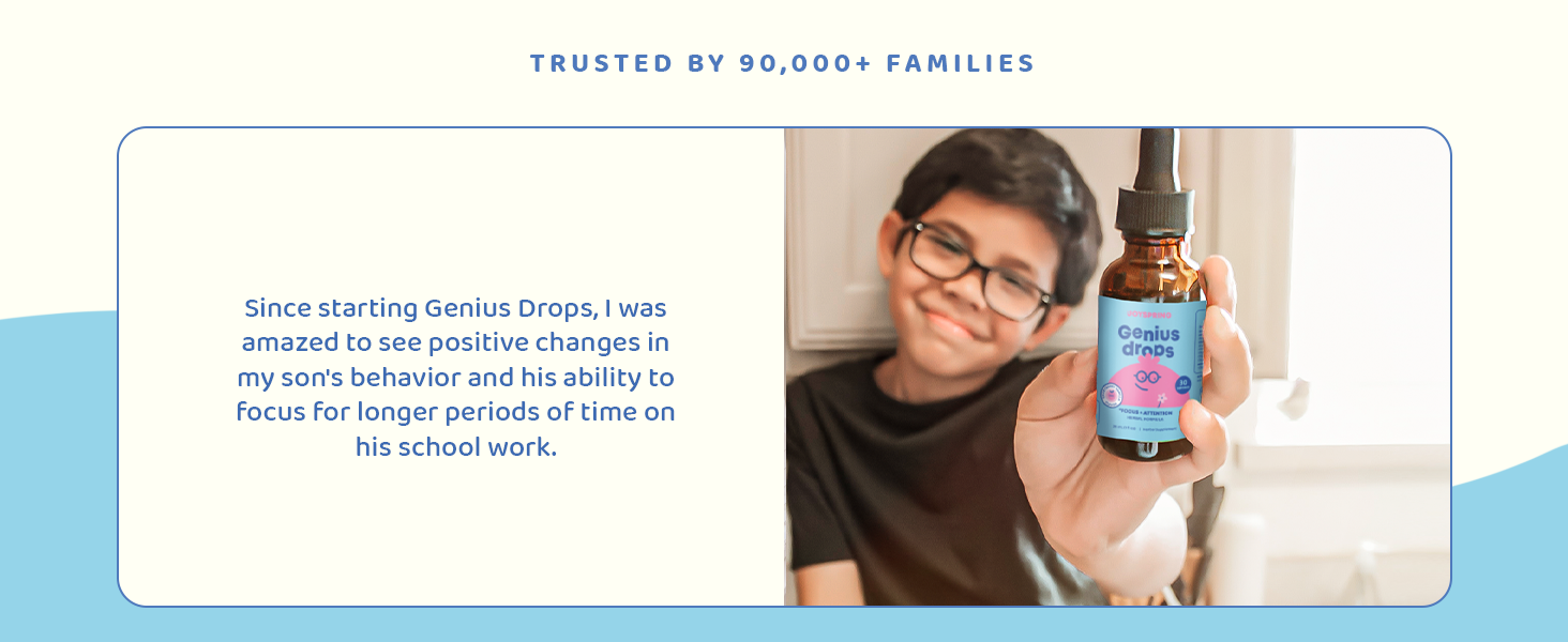 Holistic Support: Genius Drops features a custom blend of Gotu Kola to help support calm and focused moments for your kiddo.