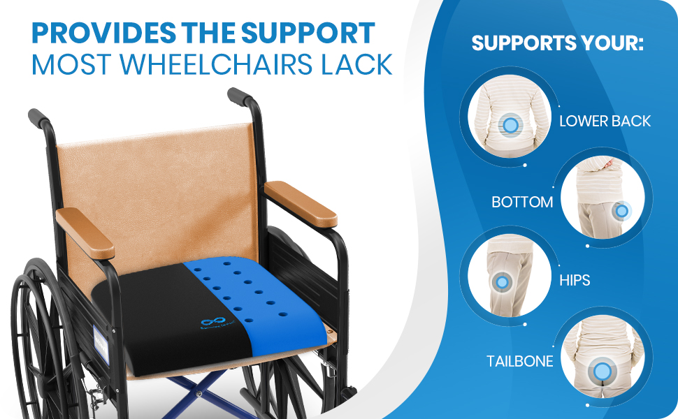 FSA / HSA ELIGIBLE: Experience the exceptional comfort of our memory foam wheelchair seat cushions, designed to provide superior support and ease pressure on your tailbone; ideal for extended sitting sessions, ideal wheelchair accessories that countours to your body and holds shape over time. FSA / HSA eligible, and designed for daily use, it provides elevated comfort and ergonomic support while reducing pressure on your hips, tailbone, and lower back