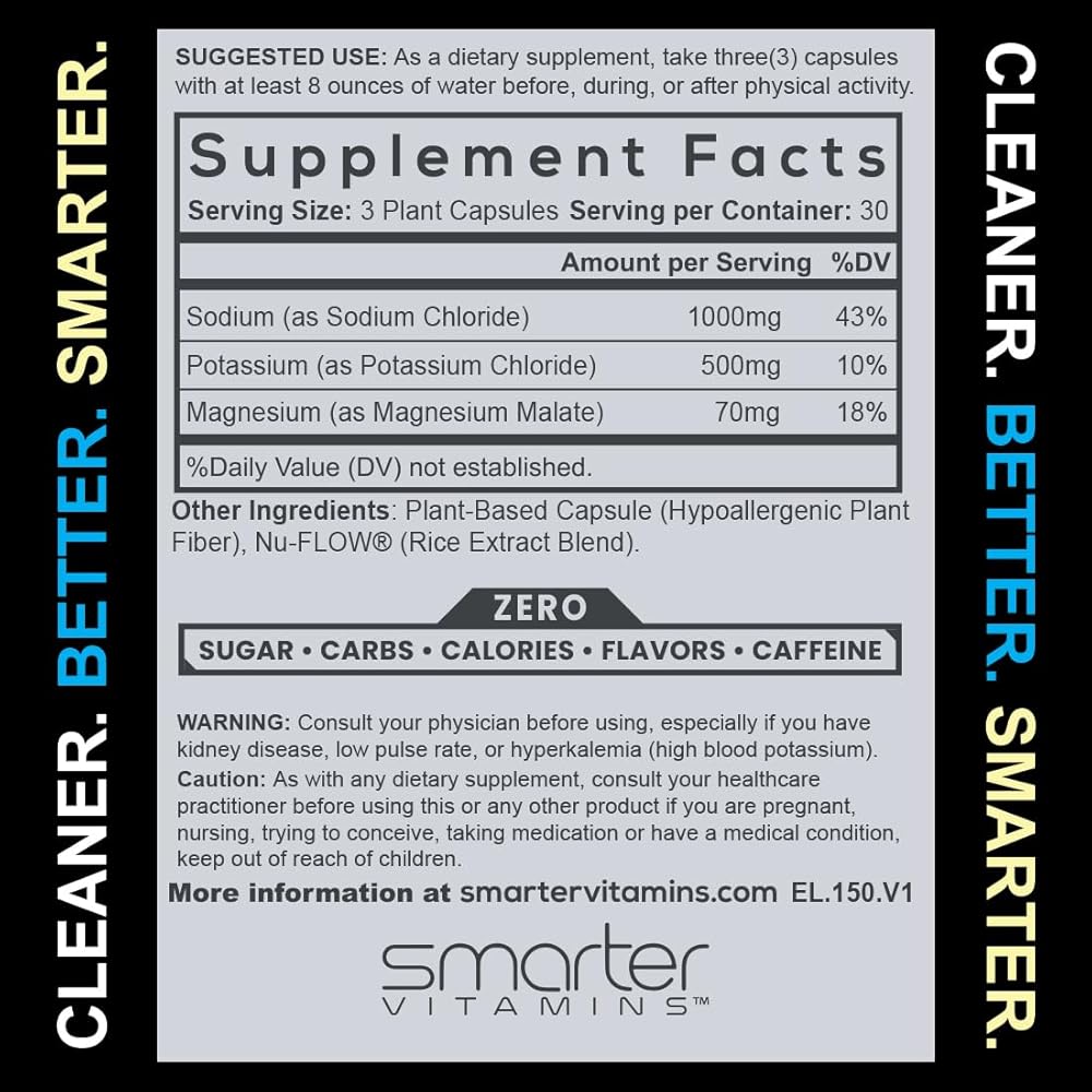 High-Dose Electrolyte Capsules: 1000mg sodium + 500mg potassium + 70mg magnesium per serving - a meaningful electrolyte hit to support hydration, performance, and daily electrolyte balance.*